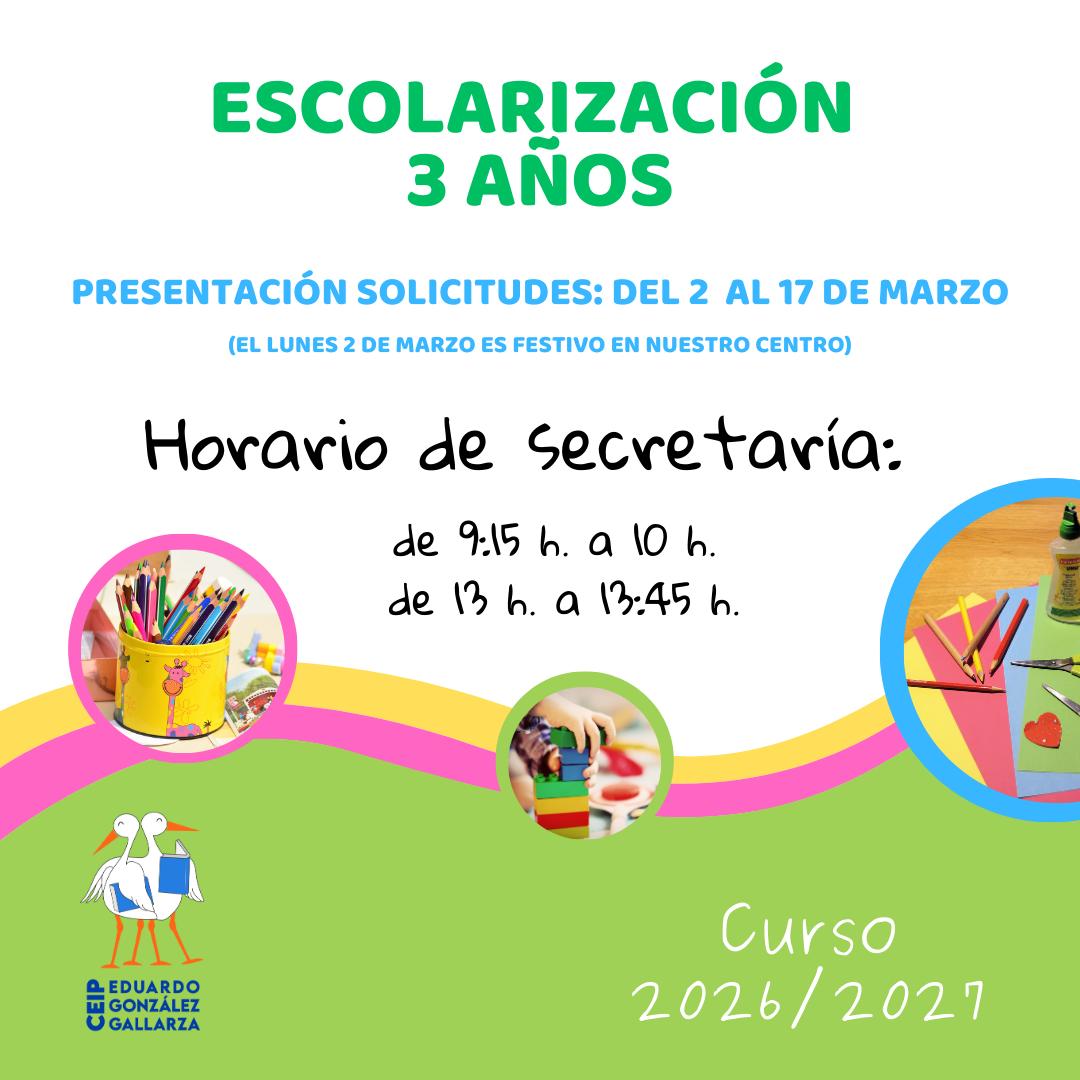 Información para SOLICITAR PLAZA en nuestro Centro para el curso 2026/2027 para aquellos alumnos que cumplen 3 años en 2026.