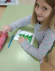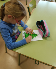 Los alumnos/as de primero de primaria hemos hecho a lo largo del trimestre un montón de trabajos de plástica, y para estas navidades queríamos hacer algo especial para regalar a nuestros seres queridos. Para ello, nos pusimos manos a la obra y decidimos hacer una postal navideña utilizando la técnica de la papiroflexia. Al principio nos resultó algo difícil, pero con la ayuda de las profes y un poco de paciencia, conseguimos terminarla y nos quedó muy chuli.