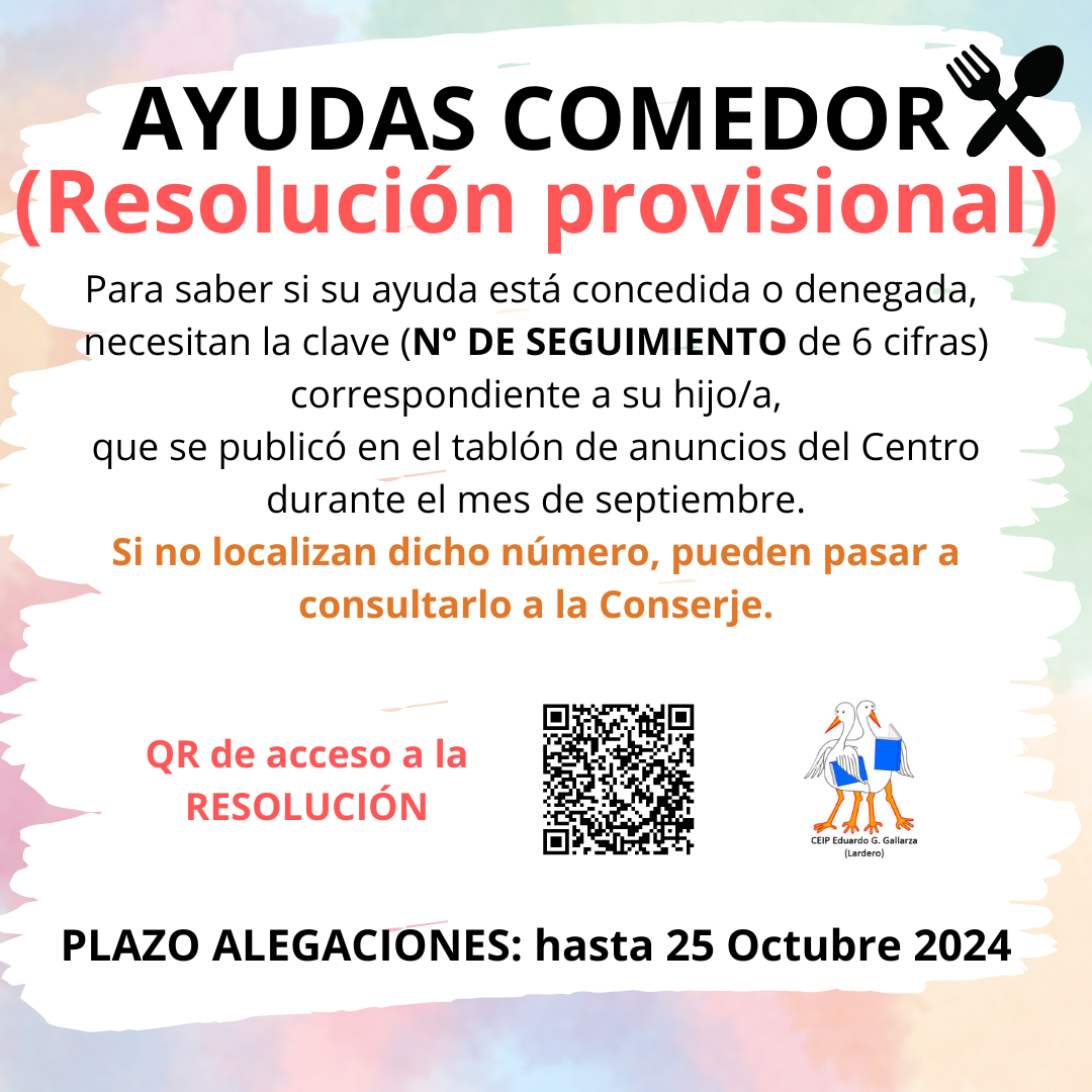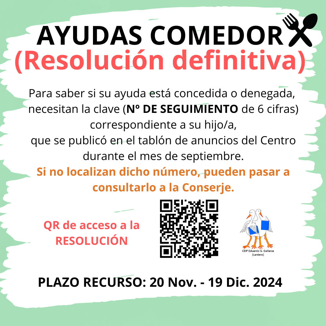 Ya se ha publicado la convocatoria para las ayudas de COMEDOR para el próximo curso 2024/2025.