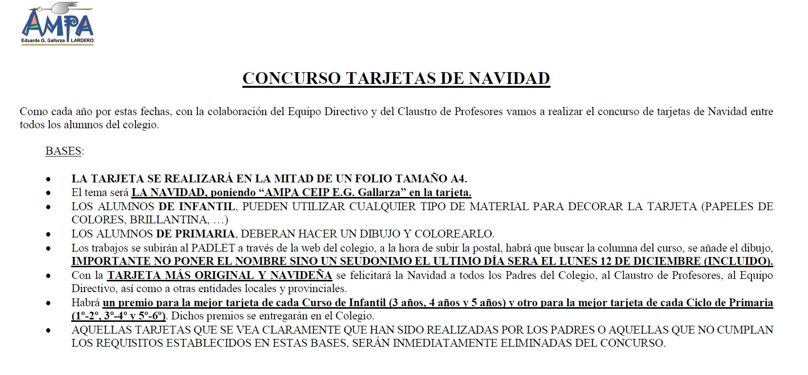 Desde la AMPA del Centro nos informan sobre el concurso de tarjetas de este año.