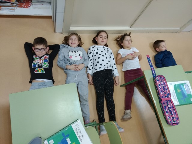Los alumnos/as de primero estamos llevando a cabo unas sesiones de relajación todos los días después del recreo, ya que , como es normal, suben muy alterados y excesivamente activados del patio. Queremos expresar que están siendo todo un éxito porque a los chicos/as les gusta mucho y nosotros estamos consiguiendo que se vayan calmando poco a poco. De esta manera, la vuelta al trabajo es mucho más sencilla y divertida para todos.